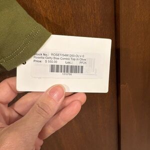 NWT Rosetta Getty top 100% silk front 100% organic cotton back Olive Small
