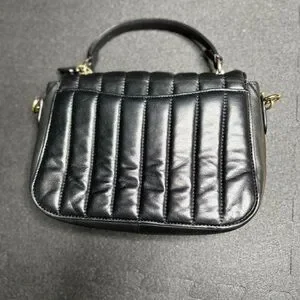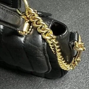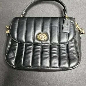 Coach Turnlock Crossbody Bag ,Elegant black leather with quilted texture. Gold-tone accents enhance style. Ideal for any occasion.