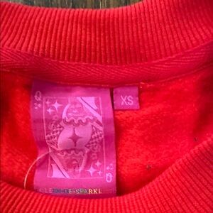 Festive red sweatshirt with Santa letter designs. Perfect for holiday cheer. Roomy fit 6-8 could easily wear this XS