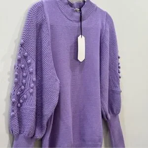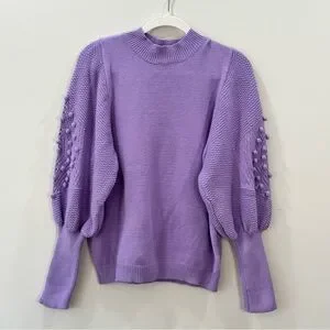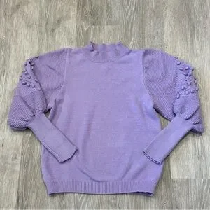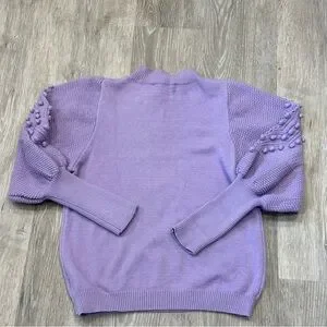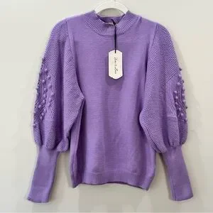 Vine & Love Purple Pom Pom Sleeve Sweater Large NWT Lavender Balloon Sleeve Knit