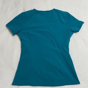 Dickies scrub top: Women’s stretchy short sleeve scrub shirt. Turquoise/teal color.
