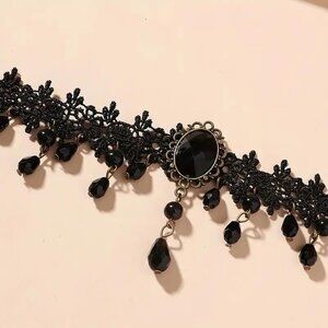 Elegant Black Layered Velvet Leather Necklace for Women - Adjustable Gothic Style