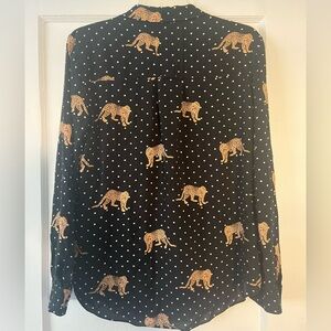 Cute button up collared long sleeve shirt. Polka dot and leopard.