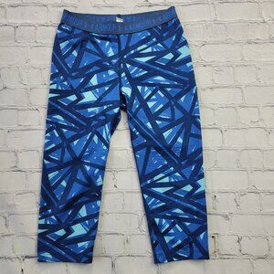 Gently used Under Armour woman’s blue printed workout leggings. Size tag is missing, fits as size S.