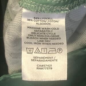 • Other information: This Ann Taylor ankle pant features a black white polka dot pattern against a green background. A ruffle elastic waist creates a comfortable fit. Made of a terry fabric blend of Lyocell and cotton, these pants have a high rise and a straight leg style. They are designed for easy care and are wrinkle-resistant, making them ideal for various occasions such as travel, parties, casual wear, work, or business settings. With features like an elastic waist, stretch, pockets (front side slant and back sewn shut), and breathability, these pants offer both style and comfort.