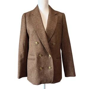 J.Crew Bristol Double Breasted Blazer Jacket Herringbone Wool Brown Size 8