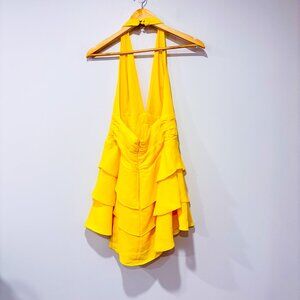 NBD Tweets Yellow Ruffled Open-Back Halter Mini Dress | Medium *