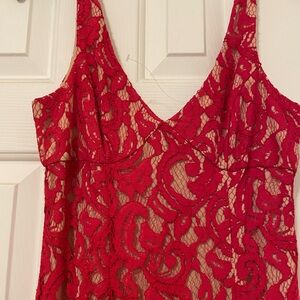 Elegant red lace maxi dress. Sleeveless with a V-neckline. Perfect for evening events. WORN ONCE