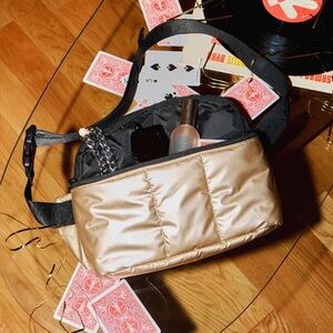 Chic metallic gold belt bag by Calpak. Ideal for hands-free convenience.