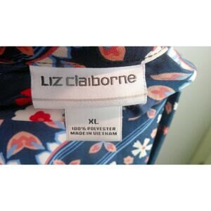 Liz Claiborne Women's XL Navy Short Sleeve Floral V-Neck 3/4 Button Blouse