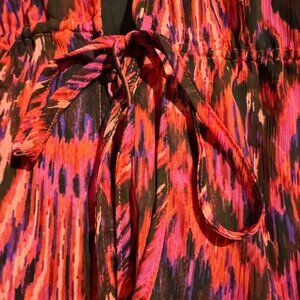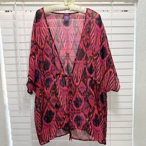 Beverly Drive Women's pink, red, black tie front sheer topper; Size 16-18