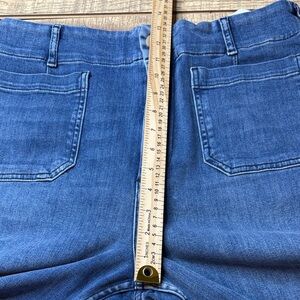 Chic wide leg jeans by Anthropologie. Stylish blue hue. Perfect for versatile wear. Very good condition. Has a good amount of stretch. Measurements are in photos