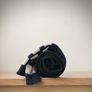 joodito 100% cashmere sweater preppy tie scarf muffler winter black navy striped