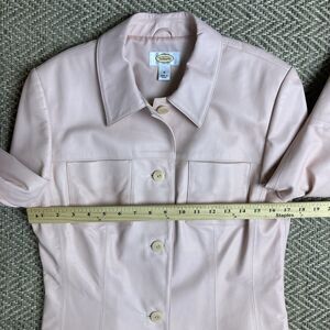 Chic leather jacket with button front. Features a classic collar. Perfect for layering. New!!