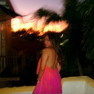 PepperMayo twin flame mini dress in orange gradient. Beautiful ombré open back dress perfect for any occasion. Perfect for someone size 4-6.