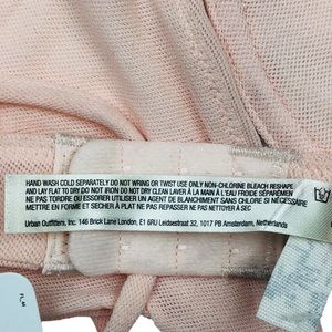 Free People Intimately In The Mood Underwire Bra in the color Sweetheart Sunrise, size 32D. A minimalist, unstructured bra gets a bit of shadowy intrigue from textured mesh cups that create a chic plunging neckline.