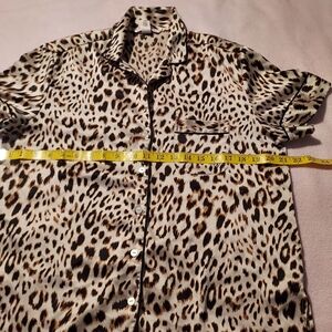 Victoria's Secret VS (S) Cream Black Satin Cougar Animal Print Button Up Shirt