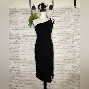 NWT Hello Molly Black Taking it Back One Shoulder Midi Dress