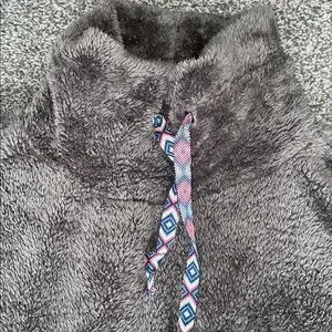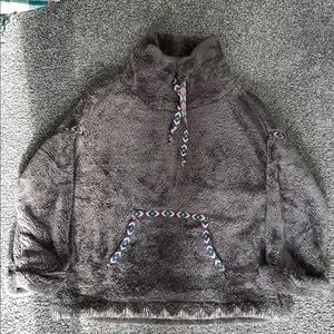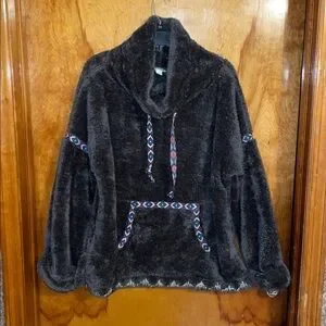 Sundance Mountain Loft Oversized Sherpa Fleece Pullover Cowl Neck Gray Size XS