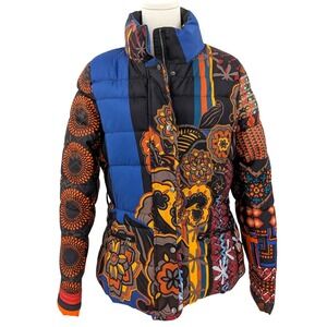 Desigual Puffer Jacket Women's 40 Multicolor Patchwork Print Statement