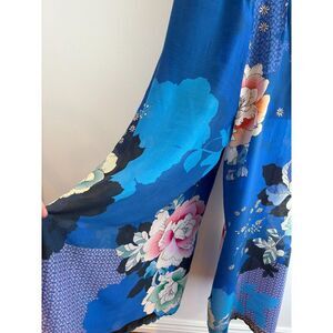 Authentic Vintage Johnny Was Wide Leg Pant with scalloped edges and embroidered finish. Each pant leg has a dramatic slit on the outside hem. Elastic waist with a front tie and giant floral print. Absolutely gorgeous.