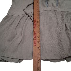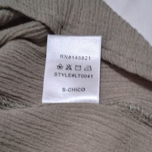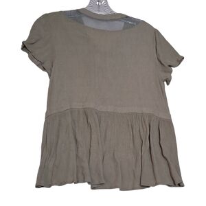 Elevate your casual wardrobe with this stylish size small olive drab green top. It has tie strings at the bodice and mesh inserts around the neckline. Perfect for any occasion. Hand wash cold. Do not bleach. Line Dry. No flaws noted.