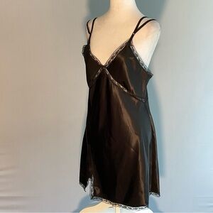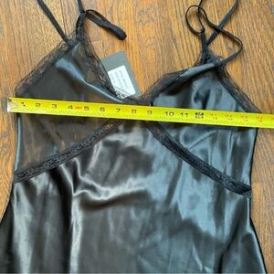 Sexy Shop Michella Small Black Satin Slip Dress Lace Slit Accents Elastic Straps
