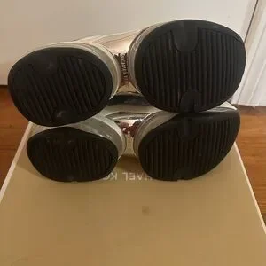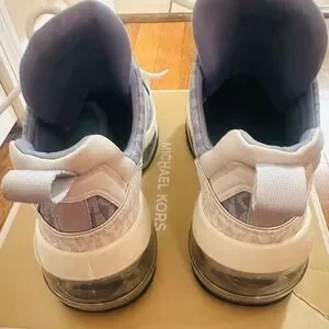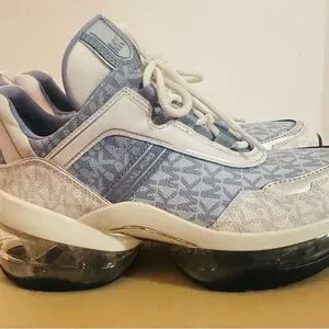 Chic Michael Kors sneakers with light blue and beige design. Ideal for everyday wear.