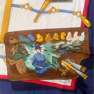 • It features a detailed equestrian-themed design with various riding and hunting accoutrements