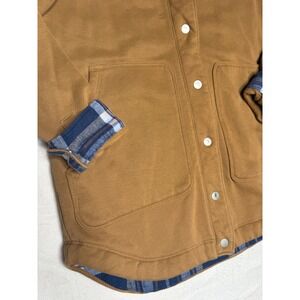 Keywords: Columbia jacket, women's outerwear, fleece jacket, sherpa lined, snap button, plaid collar, camel brown, casual wear, outdoor gear, fall fashion, winter coat, cozy, warm