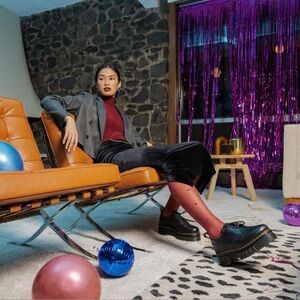New Dr. Martens Black Audrick Oxford Shoes with Yellow Stitching Sz:8