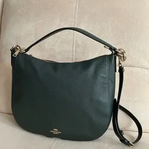 Coach Elegant Leather Satchel, Handbag with Detachable Long Strap
