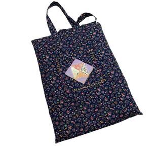 Vintage handmade quilted patchwork tote bag. Open top, it has an interior and exterior pocket. It measures about 12" wide, 17" tall, and about 2" deep with about a 7" strap drop. Gently preowned with no noted flaws. As a vintage piece, may show signs of normal wear and use consistent with age.