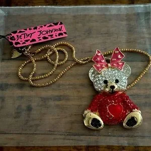 New Betsey Johnson Pink and Red Teddy Bear Pendant