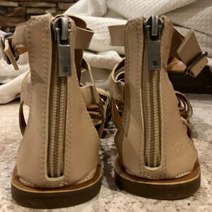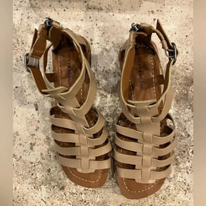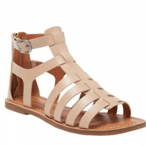 NWOB Lucky Brand Barra Gladiator Flat Sandal Dusty Sand Faux Leather Size 6.5