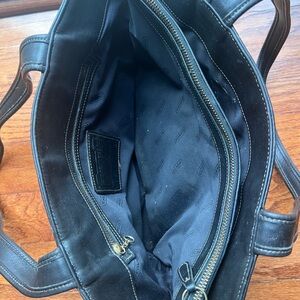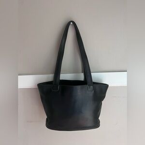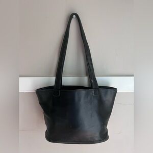 Sleek black leather tote. Perfect for versatile use. Stylish and durable.
