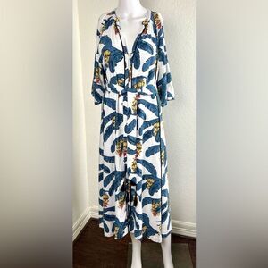 Gently worn Desmond & Dempsey X H& M Tropical linen blend tassels kaftan maxi dress. Step out in style with this elegant blue tropical dress. Perfect for any occasion, this dress combines comfort and fashion effortlessly.