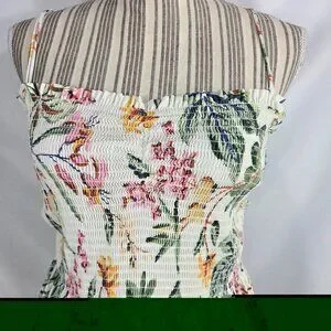 H&M White w/Multi Floral Print Removable Spaghetti Strap Smocked Top Dress Large