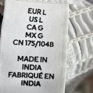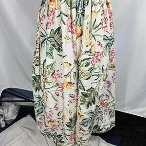 H&M, White with Multicolored Floral Print, Removable, Adjustable Spaghetti Straps, Smocked Tube Top Dress. Size Large. 100% cotton. Full skirt. Gathered in the front of the smocking to accent the breasts. Ruffle edging around the top. Gently used. No holes or stains. Smoke free home. Armpit to armpit measures approximately 14" unstretched. Armpit to hem measures 41".