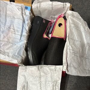 Skechers Black and Pink Slip-On Sneakers 7.5 W Women Walk Joy NIB