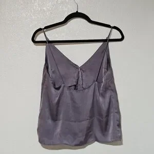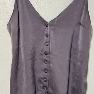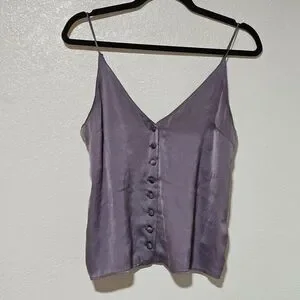 Chic lavender tank top with button-up front. Spaghetti straps for a stylish look. Perfect for layering or wearing alone.