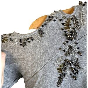 Anthropologie Deletta Cold Shoulder Beaded Embellished Grey Sweatshirt Sz PS EUC