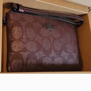 Chic Coach wristlet with signature pattern. Compact and stylish. Ideal for essentials.