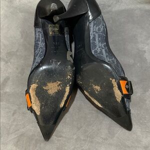 Chic Dior heels with a bold black and orange design. Perfect for elevating any outfit. John Galliano's Collection