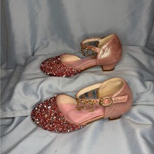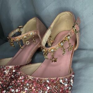 Sparkle alert! ✨ Adorable pink glitter party shoes with star-charm ankle straps. Perfect for twirling, photos, holidays, & tiny diva moments. Light wear on soles but SO much life left. Size 2 Youth. 💖