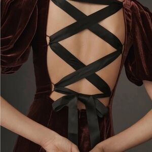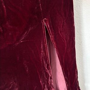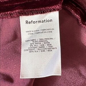RARE!!! Reformation burgundy velvet midi dress. Features puff sleeves and open back with black strap detail. Perfect for evening wear.