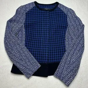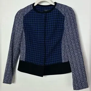 Ann Taylor Women's 2P Petite Blazer Blue Black Houndstooth Cotton Wool LS