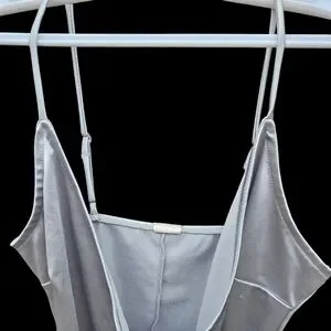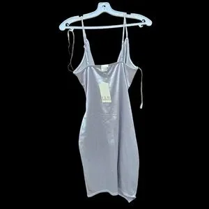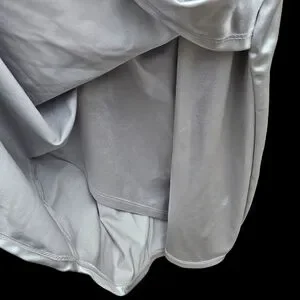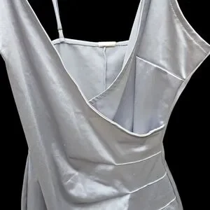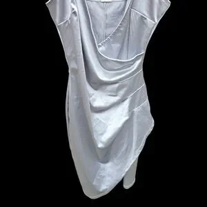 Chic silver dress with a draped design. Perfect for special occasions.