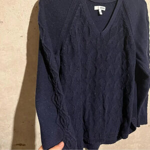 Women's Sonoma Pullover L/S Cable-knit Sweater - Size XL - Navy Blue