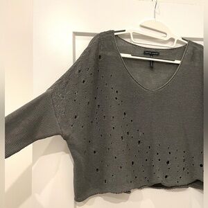 Sarah Pacini Distressed Knit Oversized Cropped Sweater – One Size Top